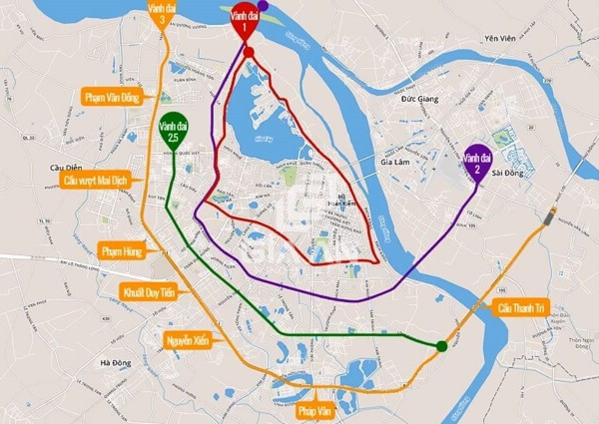 Bản đồ các đường vành đai tại Hà Nội. Ảnh: Bộ Xây dựng