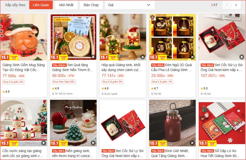 Ở nhóm quà tặng, nhu cầu tập trung chủ yếu vào các cặp đôi và trẻ em. Các sản phẩm gắn tag “Giáng sinh” thường được thiết kế dưới dạng combo, set quà, như quần áo đôi, mỹ phẩm, trang sức hoặc đồ chơi, giúp người tiêu dùng dễ lựa chọn và tối ưu thời gian mua sắm.