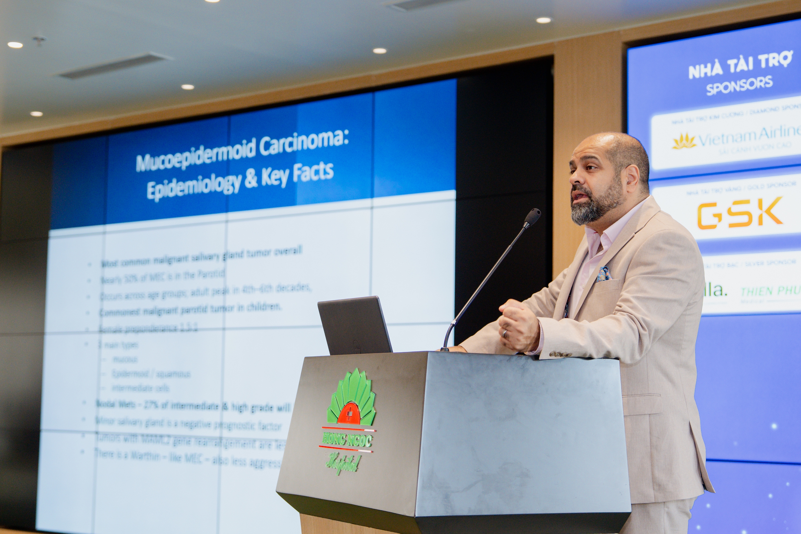 Phát biểu khai mạc Hội nghị, Bác sỹ Hà Kim Trung - Phó Giám đốc Y khoa, Bệnh viện Đa khoa Hồng Ngọc - Phúc Trường Minh cho biết: Theo Viện Y tế Quốc gia Hoa Kỳ (NIH), ung thư đầu - cổ đứng thứ 7 trong các loại ung thư phổ biến toàn cầu. Tại Việt Nam, số người mắc bệnh dưới 40 tuổi đã tăng gấp đôi trong 10 năm qua, cho thấy xu hướng trẻ hóa đáng lo ngại. Bệnh có thể khởi phát ở nhiều vị trí trọng yếu như họng, thanh quản, khoang miệng, mũi xoang, tuyến mang tai, hay tuyến giáp,... liên quan trực tiếp đến các chức năng sống, hệ thần kinh và cả thẩm mỹ.